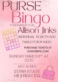 PURSE BINGO FUNDRAISER for Allison Jinks