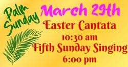 Fifth Sunday singingSun Mar 29 2026, 6:00pm CDT