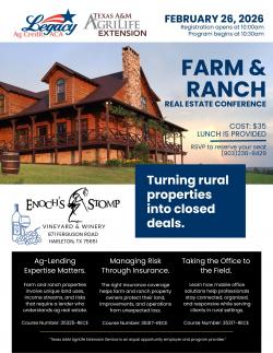 Legacy ag credit & Texas A&M AgriLife farm and ranch real estate conferenceThu Feb 26 2026, 10:00am CST